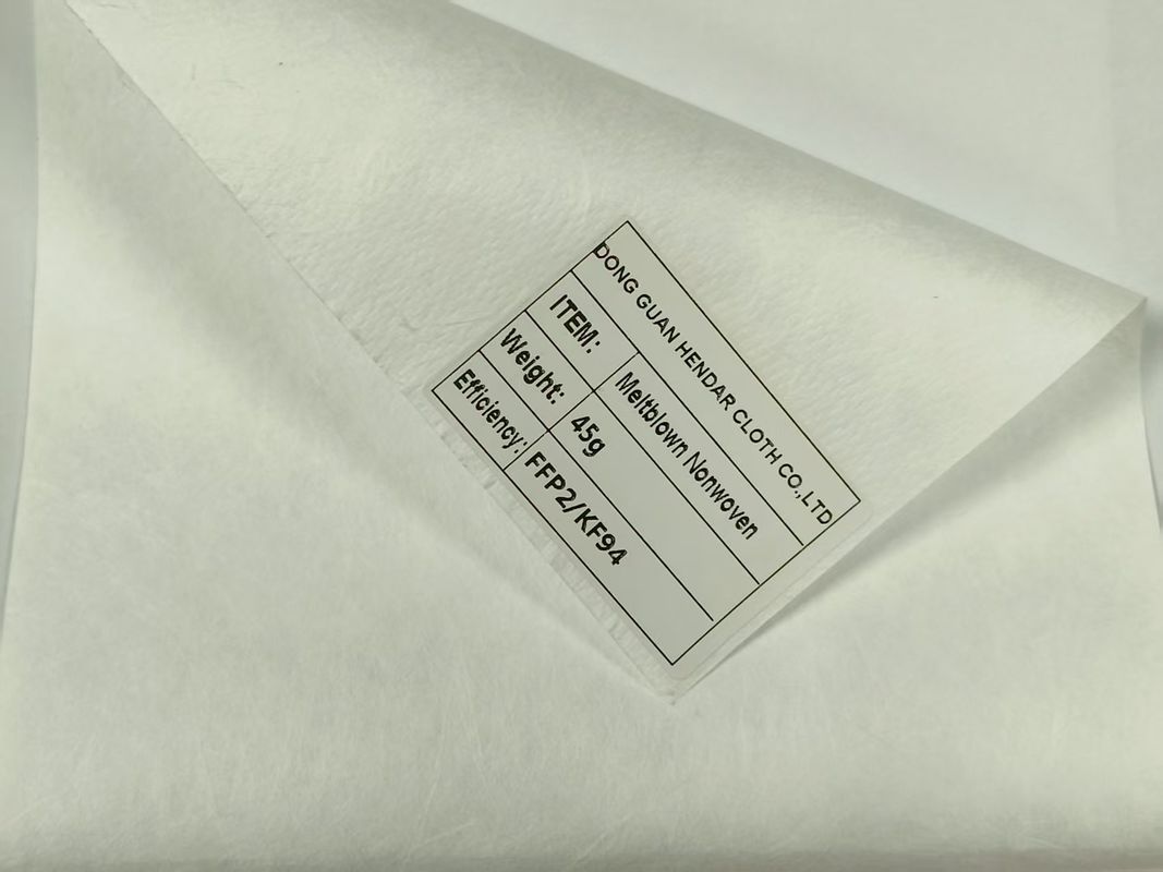 1Máscara quirúrgica de material médico y sanitario: capas internas y externas con material fijado, en el medio es una tela soplada fundida.